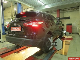 Развал схождения Ниссан Кашкай мы выполняем на 3D оборудовании фирмы Hunter с датчиками Huwkeye - это обеспечивает быстроту и качество исполнения. Для предотвращения преждевременного износа резины рекомендуем производить проверку параметров сход-развала и возможную регулировку при следующих условиях: автомобиль уводит в сторону, чрезмерно "тугой" руль, был наезд на препятствие или в яму, после сезонного шиномонтажа, при проведении планового ТО. Перед тем как сделать сход-развал на Кашкай необходимо убедиться, что нет проблем с рулевыми тягами (для регулировки схождения по переду), регулировочными болтами рычагов задней подвески (для схождения и развала по задней оси)